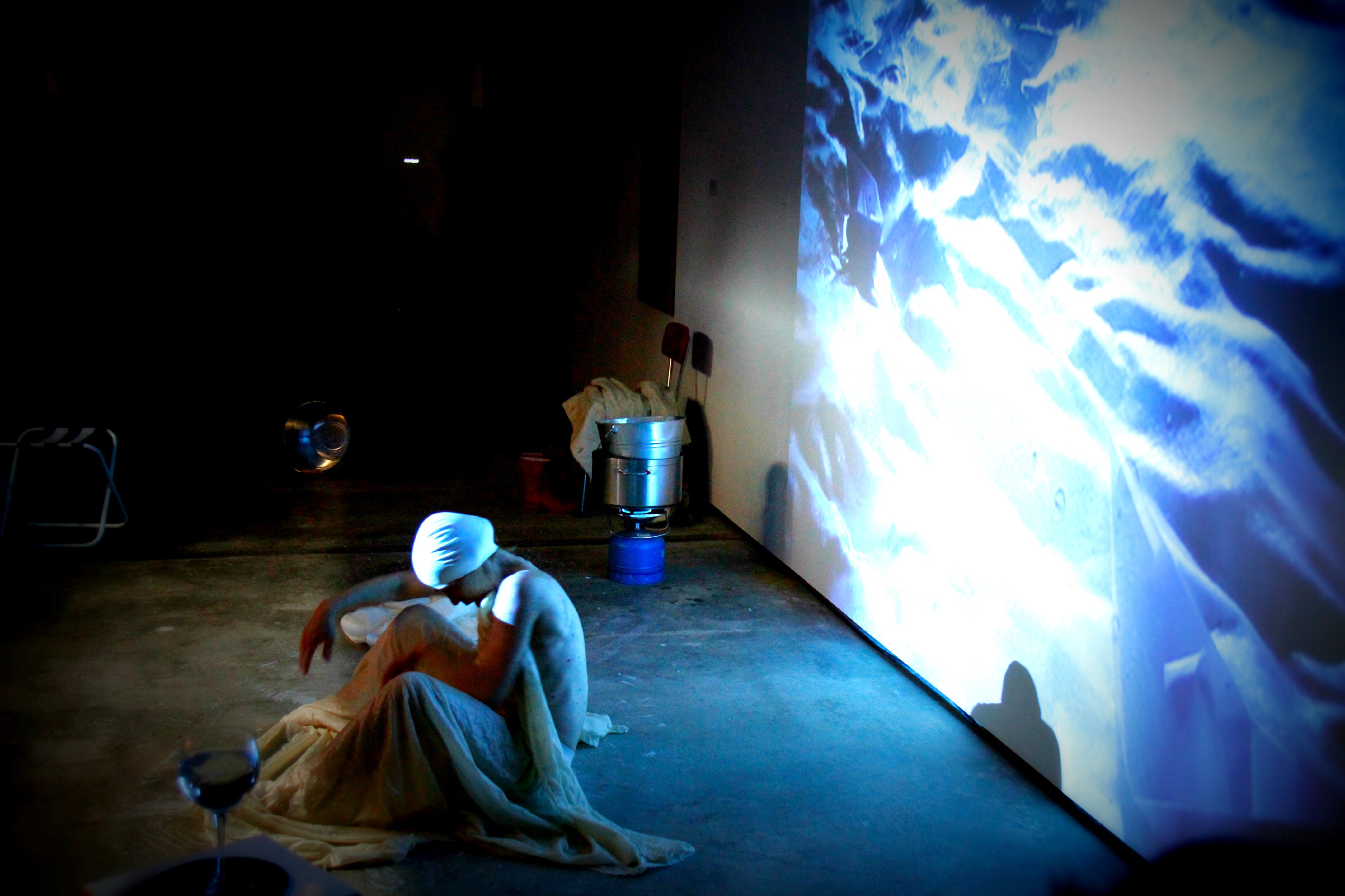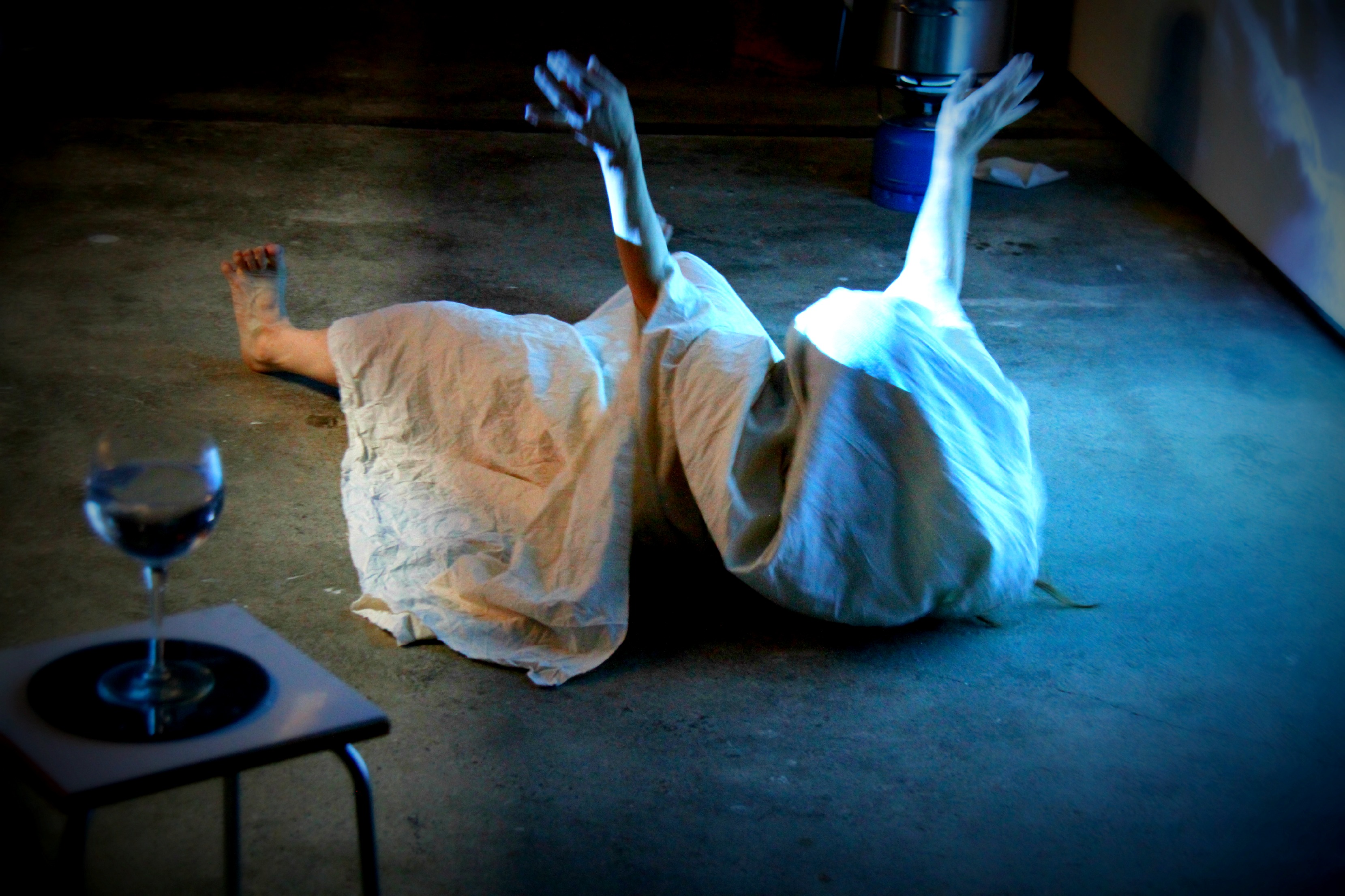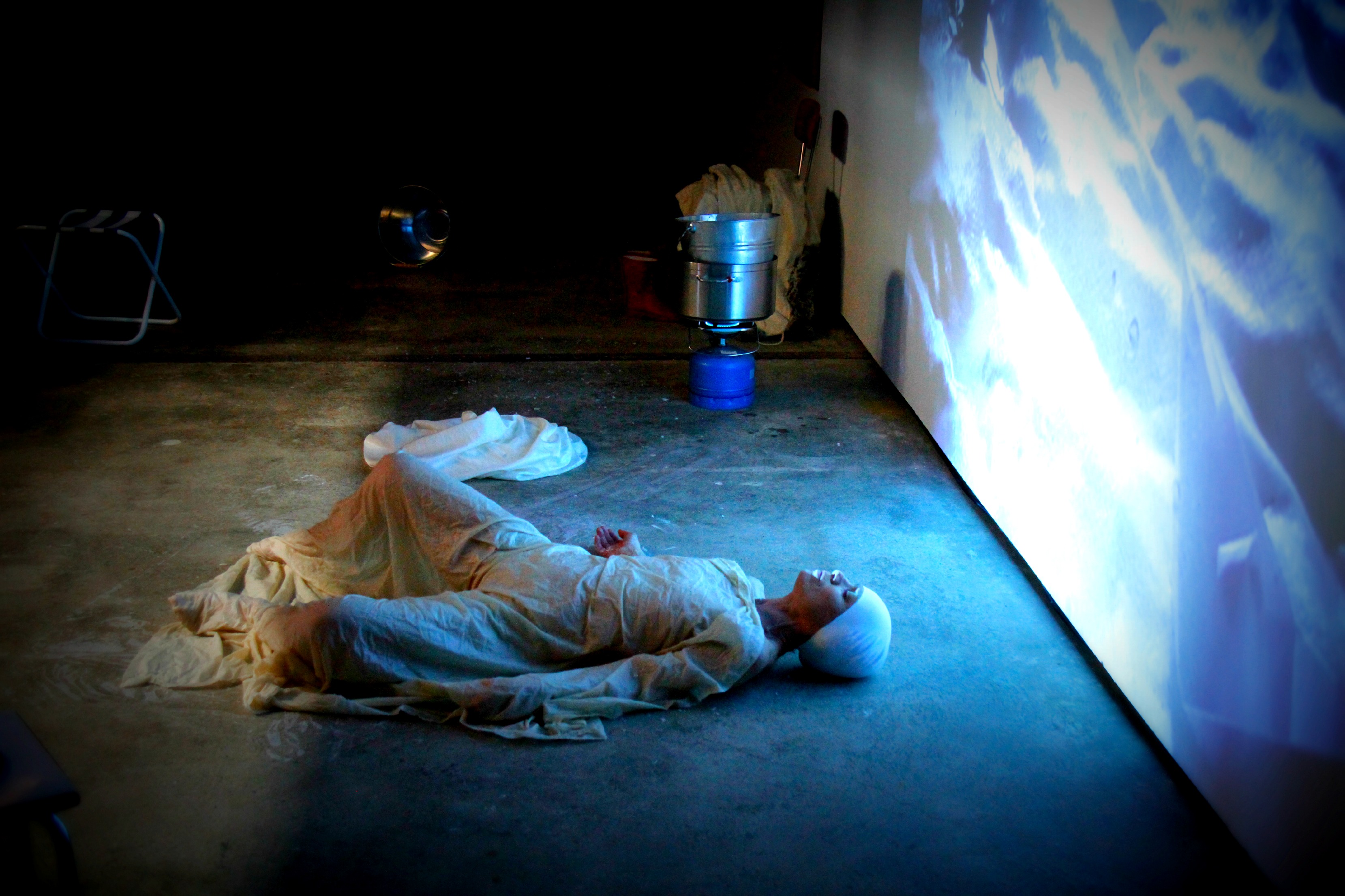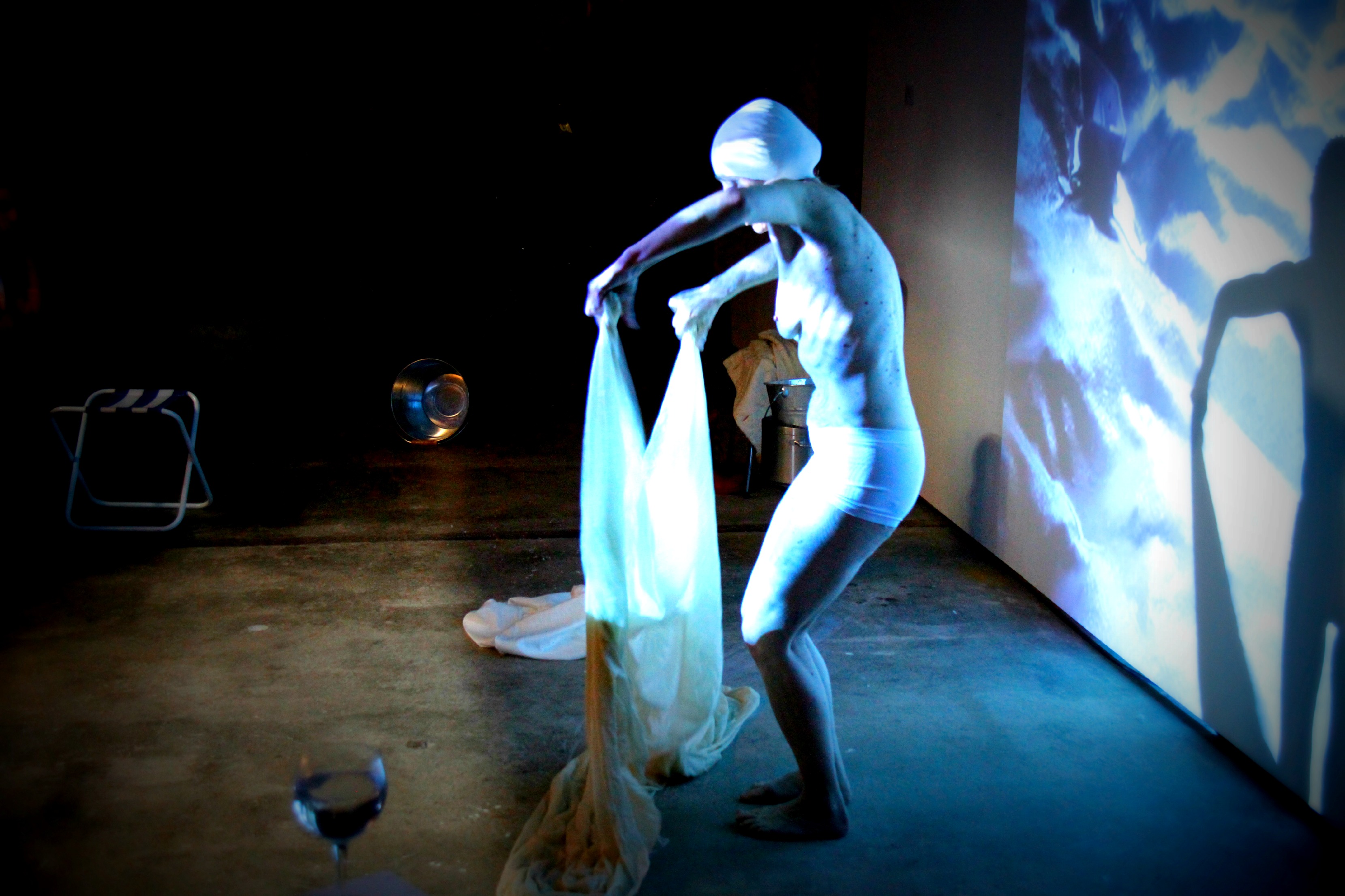 Im Zentrum der Performance steht ein Körperabdruck – live hergestellt aus einem Leinentuch, in heisses Wachs getaucht und auf den Körper gelegt.