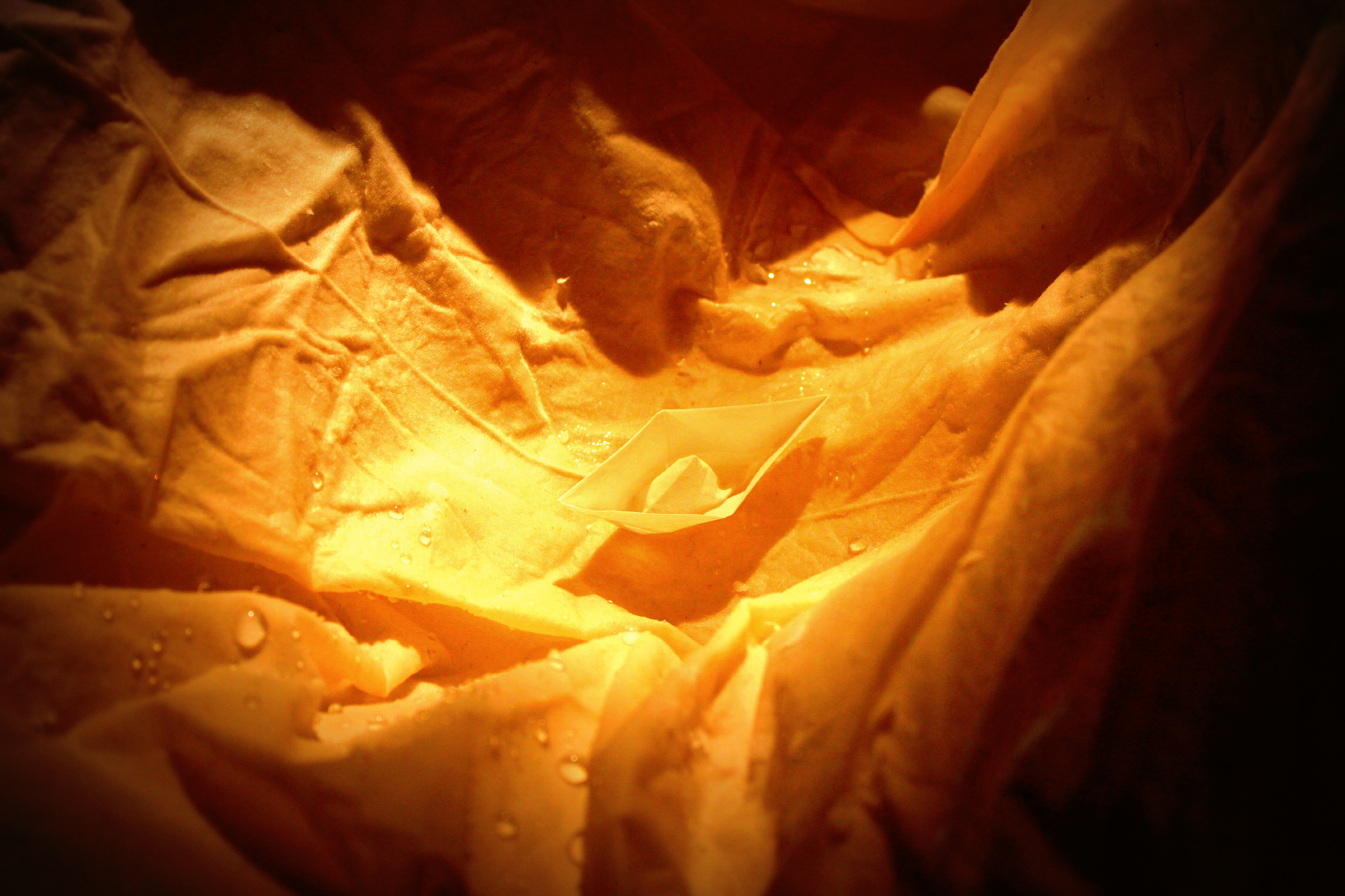 Verschiedene Körper-Landschaften tauchen auf und ziehen vorbei, bis am Ende eine körperlose Hülle vom Gewesenen erzählt – in ihrem Schoss schwimmt ein kleines Papierboot.